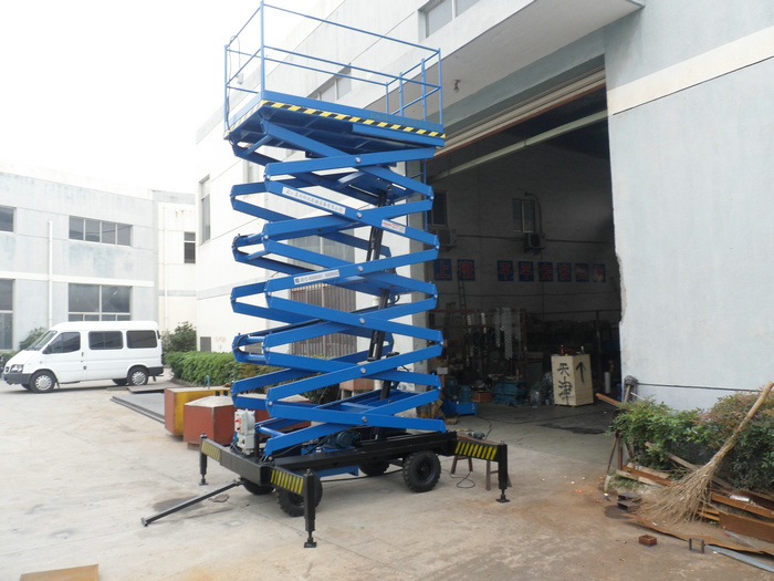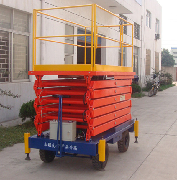 剪叉式高空作業(yè)臺是用途廣泛的高空作業(yè)專用設備。它的剪叉式機械結構,使升降臺起升后有較高的穩(wěn)定性,